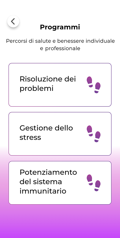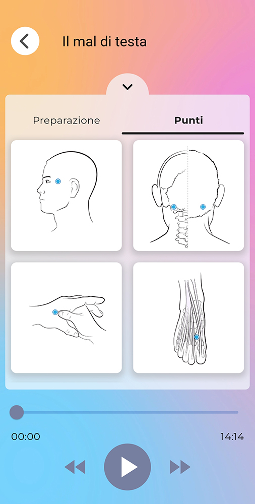 Scopri un approccio innovativo alla Salute e al Benessere! La nostra APP supporta ogni fase del tuo viaggio verso il benessere attraverso pratiche multisensoriali che includono Acupressione, Suonoterapia e Cromoterapia. Il tutto letteralmente a portata di mano!